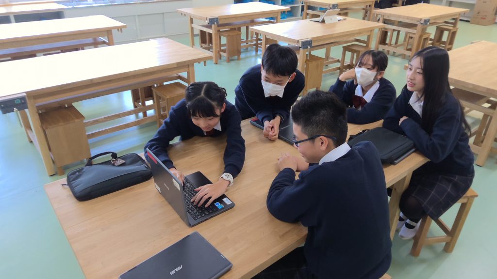 本日の午後、MEDARの皆様とオンラインでつながり、「発明とは何か」をテーマに授業を行っていただきました。MEDARとは、東京大学大学院等でモノづくりの研究をされている学生さんが立ち上げ、中高生にモノづくり、科学、探究の楽しさ等を伝える活動を行っている法人です。本日の講義やグループワークを通して、モノづくりの仕組みを理解したり、モノを見る目を養ったりすることができました。授業後には、「発明とは日常から遠いものであると思っていましたが、自分に近いもので、自分も挑戦してみたいと思いました」「私たちのグループはゲームの開発について話し合いましたが、ゲーム一つをとっても、様々な開発の視点があり、意見交流する中で自分の考えが広がりました」「モノづくりの過程おけるVモデルについて知り、まずは要求定義や要件定義を考えることが大切であると分かりました」といった感想を聞くことができ、生徒たちにとって本日の体験が充実した内容であったことを感じました。