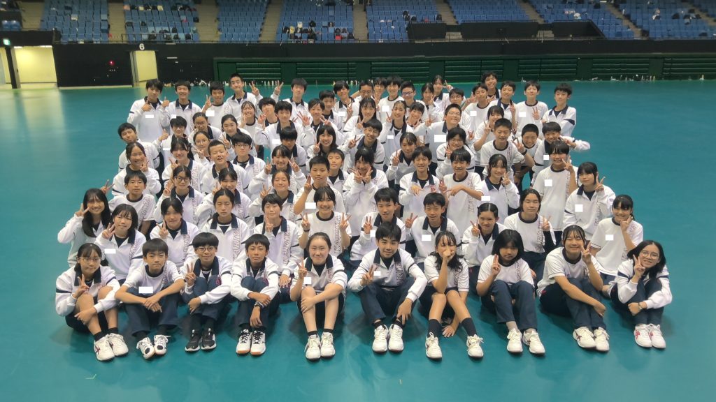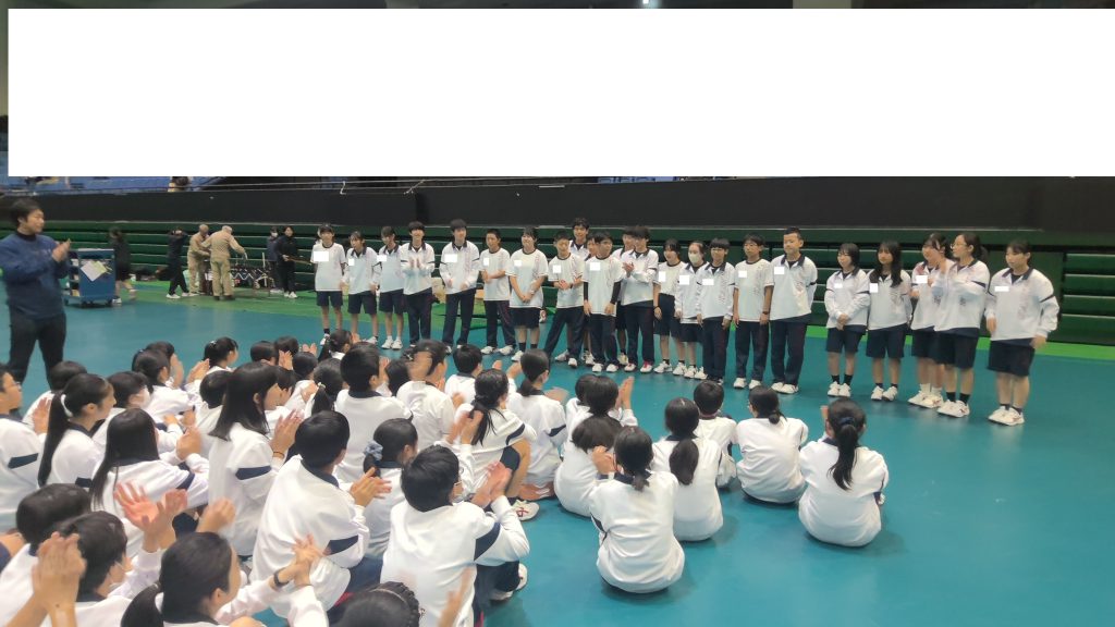 本日は、愛知県体育館にて、附属中4校(明和・津島・半田・刈谷)の生徒が集まり、合同行事を実施しました。午前は、開会式から種目まで全て生徒たち同士で運営し、刈谷附属中の生徒は、その中の一種目である「月火水木」の運営を担当しました。実行委員の生徒たちの進行が上手く、4校で大いに盛り上がりました。また、午後は教師が考えたチャレンジ種目を行いました。他校の生徒とグループを作り、制限時間内で、課題解決に取り組みました。他校の生徒と交流する機会となり、充実した時間を過ごすことができたと思います。また、刈谷附属中の生徒たちが自分たちで円陣を作り、声を掛け合う姿から、学年・学級のまとまりを感じました。