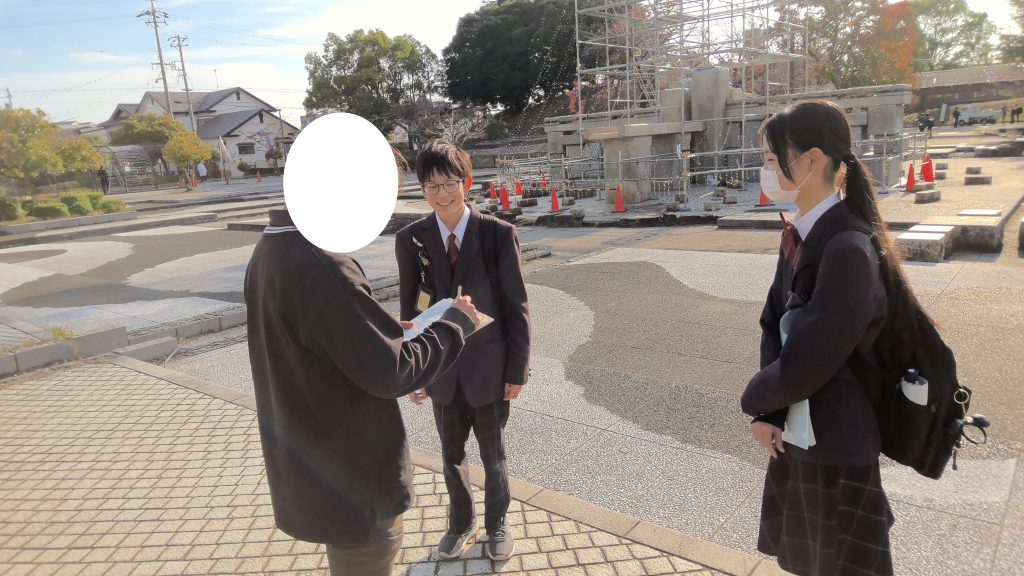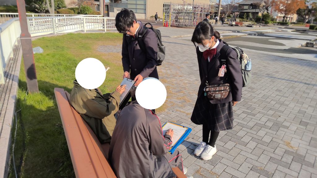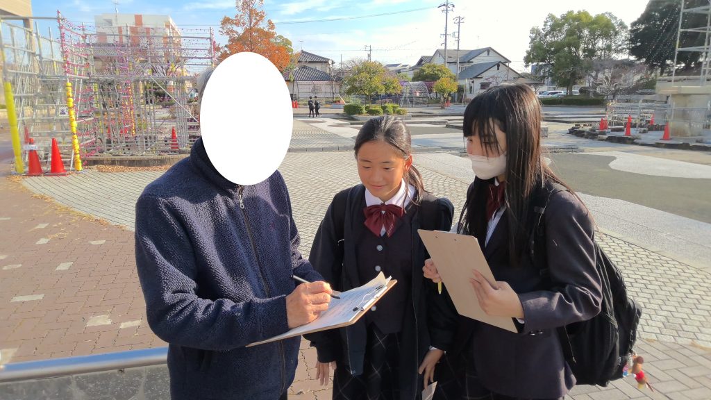 本日、職業探究「君たちは、どう働くのか?」で活用しているインターン教材において、インターン企業から課されたアンケートを用いて、街頭調査を実施しました。この取組は、多様な年代の方から情報収集を行い、顧客の要望やニーズを明らかにしていく内容になります。生徒たちは、刈谷市の刈谷駅周辺、アピタやバロー周辺、図書館周辺、知立市の知立駅前広場、図書館前広場やピアゴ周辺、安城市のアンフォーレ前に分かれて、2人以上でグループをつくり、勇気を出してアンケートのご協力をお願いしました。多くの方に立ち止まりご協力いただき、誠にありがとうございました。今回の調査結果を、今後の学習に活かしていきましょう。