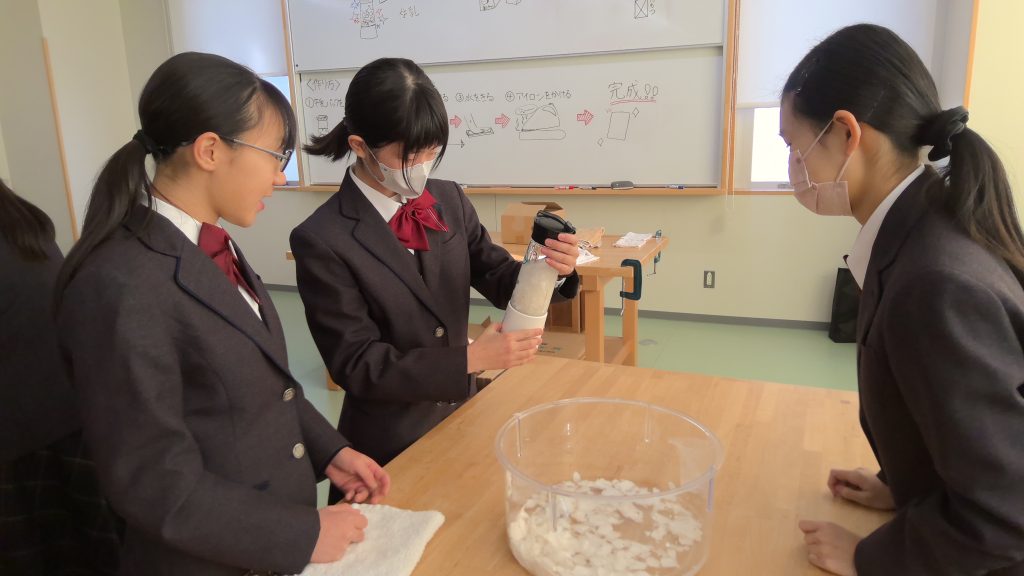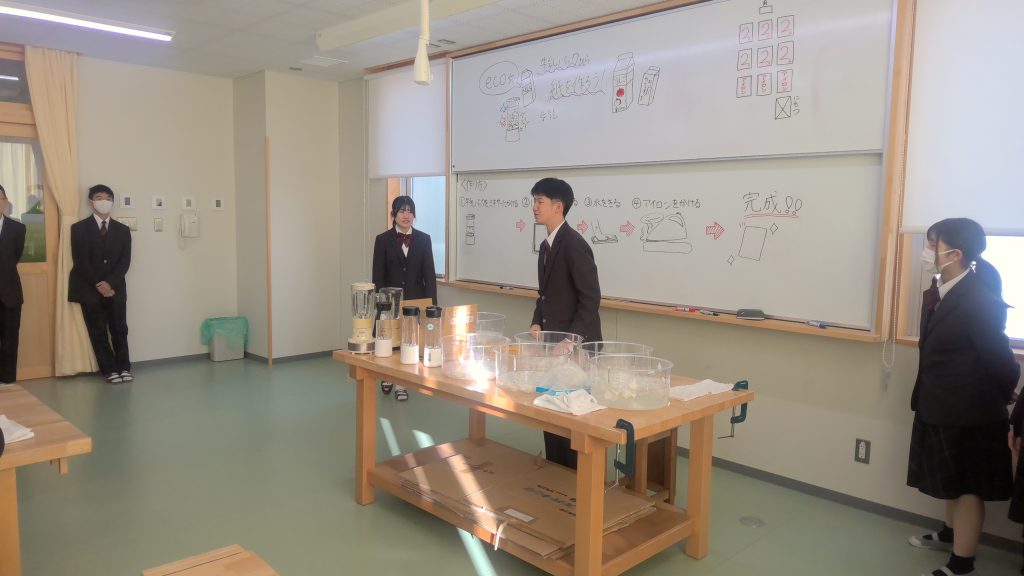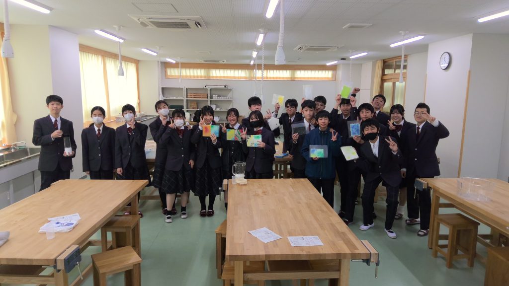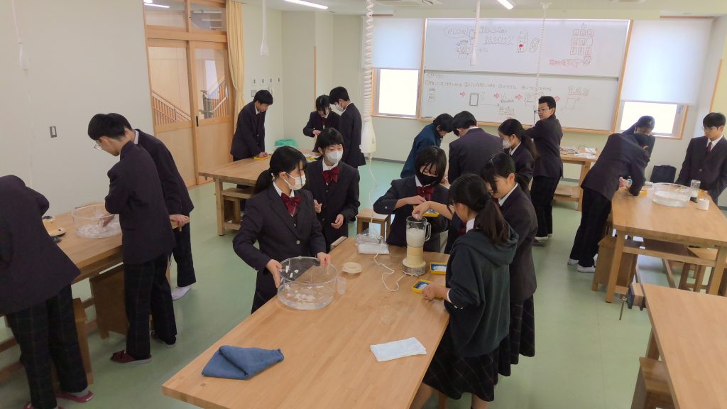 本日は、光GO!成Daysの初日でした。理科「牛乳パックから紙を作ろう!」は、初めて生徒企画の特別講座として実施しました。11月15日に、愛教大にて実施された科学ものづくりフェスタに出展した生徒8名が、今度は学年の仲間に対して講座を実施したいと希望があり実現しました。参加希望者を募ったところ、多くの学年の生徒が参加し、生徒同士で学び合う場となりました。再生紙に色を付け、素敵な作品が出来上がり、終始楽しそうに取り組む姿が印象的でした。今後も、様々な形式での講座を開催していきますので、興味があることには進んで挑戦してくださいね。