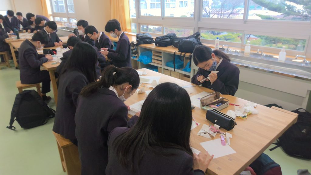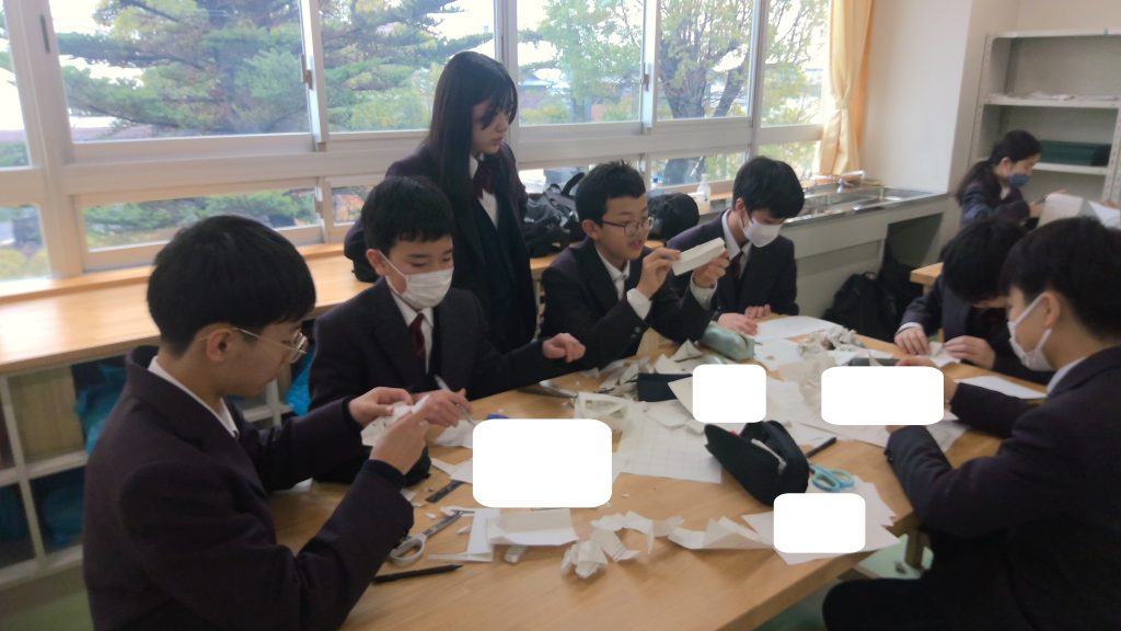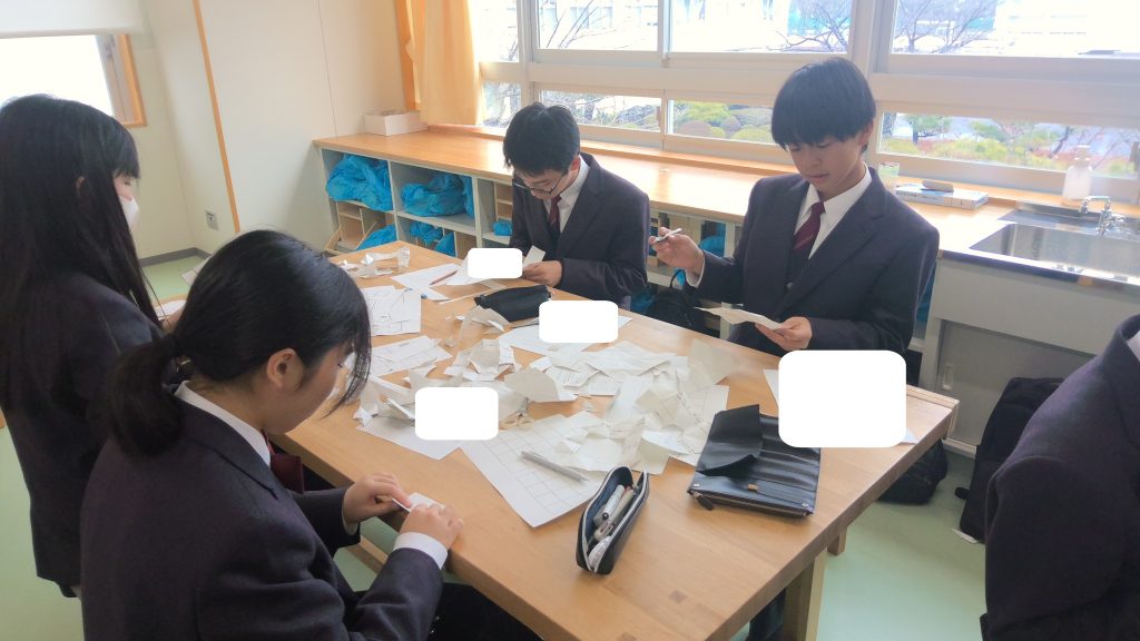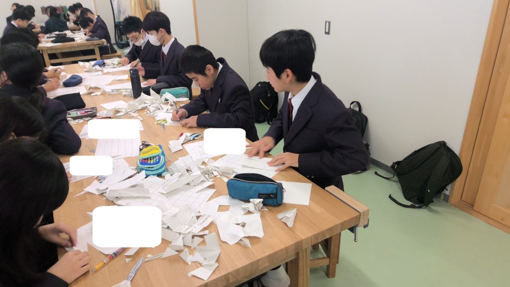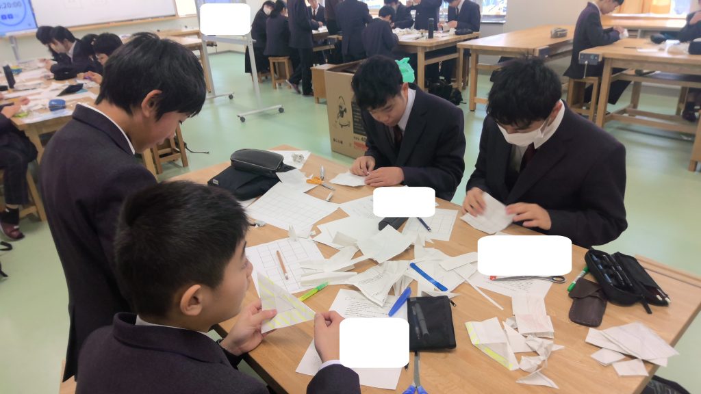 数学科の特別講座では、「Mission geometry」が実施されました。数学が好きな生徒が集まり、図形分野の見方・考え方を働かせ、協力して課題解決に取り組みました。「もう少し時間がほしかった」と悔しそうに話す生徒もいたほど、どの生徒も真剣に取り組み、あっという間の1時間半でした。達成できなかった部分は、冬休み中に、ぜひ自主的にチャレンジしてほしいと思います。
