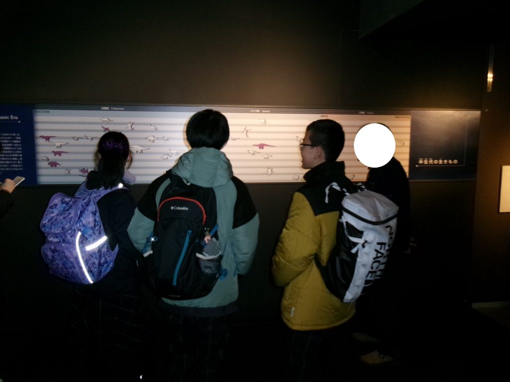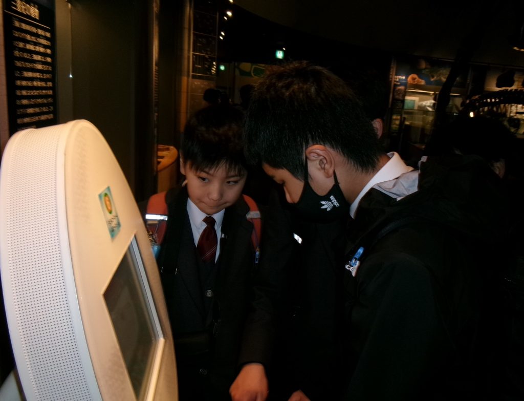 なお当日、生徒たちは、各グループに分かれて常設展示を見学しました。写真のように、体験コーナーに触れながら学んだり、熱心に学芸員の解説を聞いたりする姿が印象的でした。学んだことを、メモに残している生徒もいました。そして、見学後は、のんほいパーク内で、自由に散策したり、昼食を食べたりと、楽しい時間を過ごせたようでした。