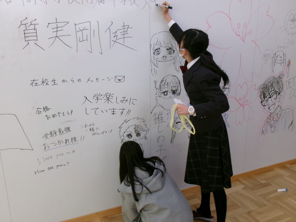本日は、令和8年度に向けた合格者(新入生)の登校日でした。本校では、中学1年生(在校生)も登校日としており、全体会後には、新入生と在校生の交流の場を設けました。12月に合格者登校日実行委員会を立ち会げ、本日に向けて、実行委員が中心となり準備を進めてきました。写真のように、在校生一人一人がそれぞれの役割を責任をもって担い、新入生に対し笑顔で接することができました。学年主任いわく、在校生の動きが本当に素晴らしく、新入生の緊張感は、次第にほぐれていったようでした。施設紹介や探究遊びなどの交流会を通して、新入生の皆さんに、本校での生活の様子を知っていただく機会になったと思います。在校生の皆さんの「先輩」になるという自覚を感じる1日になりました。