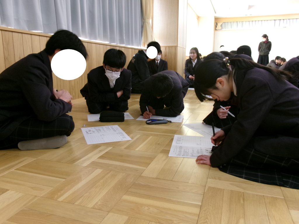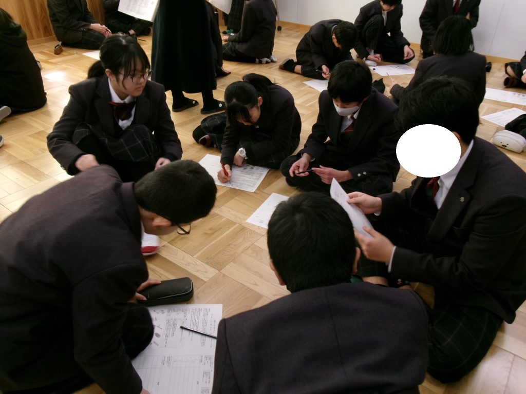本日の1・2時間目は、高校探究系の2年生と、附属中の1年生の交流会を実施しました。異年齢間の交流を通して縦のつながりを深めること、中高の立場を超えた対話・協働によりコミュニケーション力や合意形成力を養うことを目的に、交流会を設けました。始めに、紙飛行機飛距離選手権やコンセンサスゲームを行い、最後には座談会を設け、自由に話し合う時間も設定しました。中学生にとって、高校生徒との活動や交流はとても楽しかったようです。また、座談会では、高校の学校生活や部活動について、探究系の学習内容など、自分たちの知りたいことを質問する姿がありました。質問の一つ一つに丁寧に回答する高校生の姿もあり、とても素敵な交流会になりました。