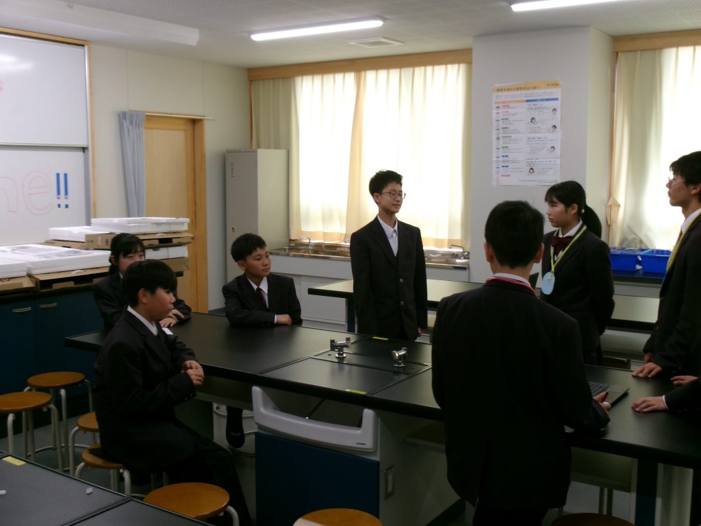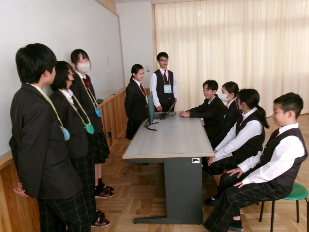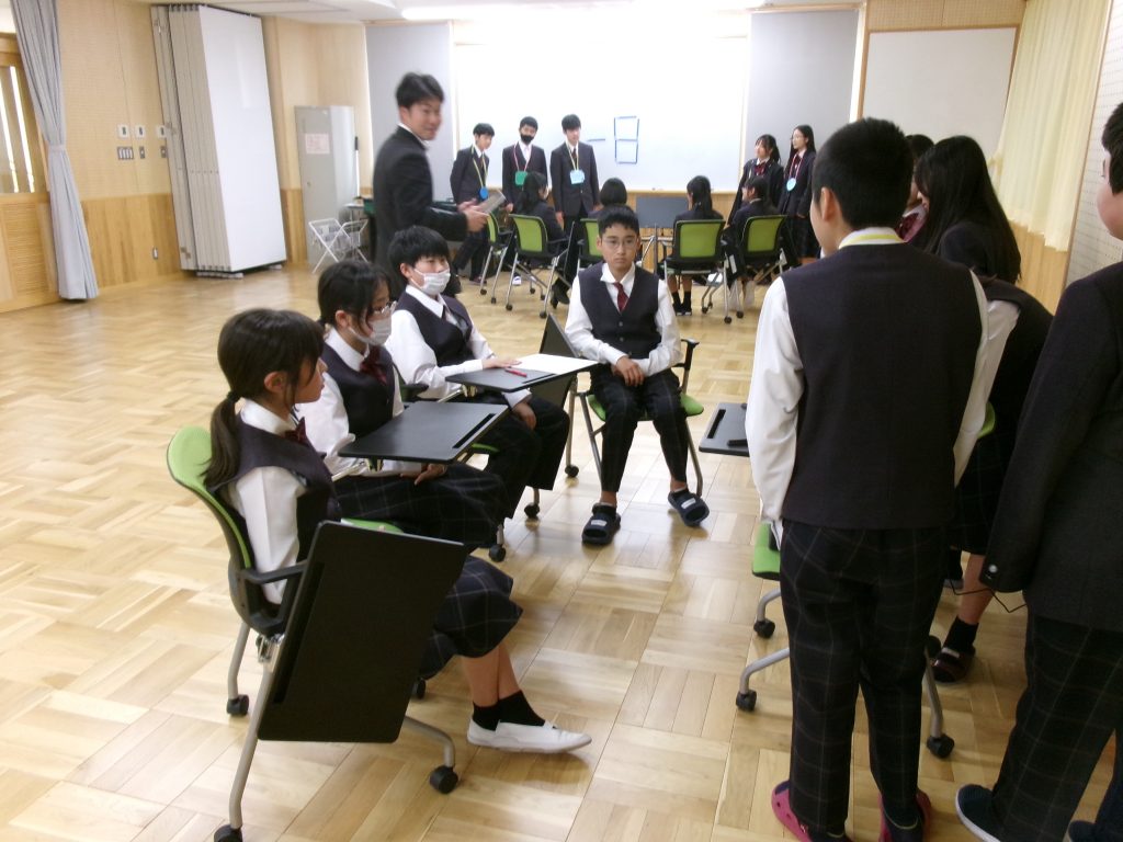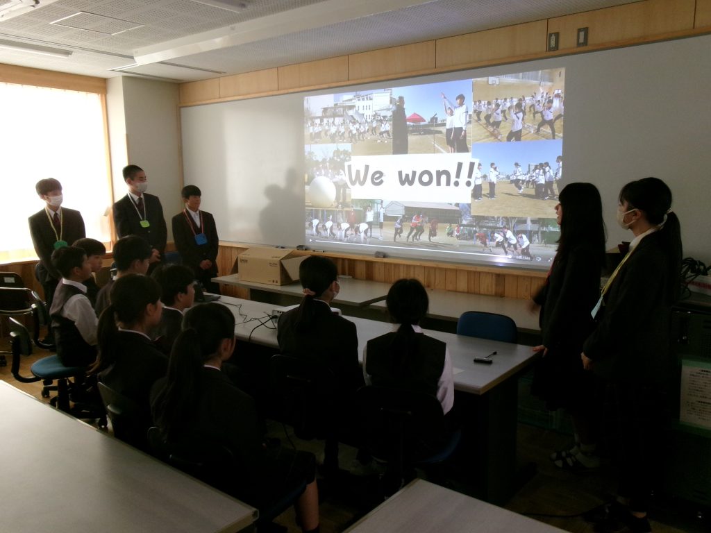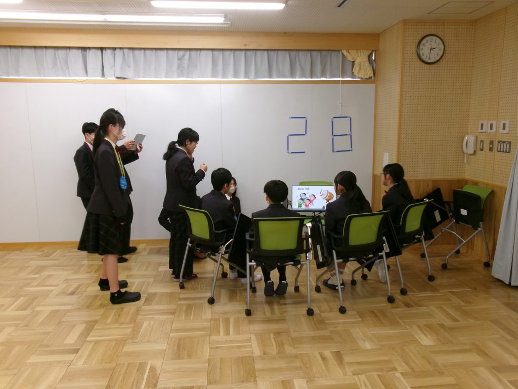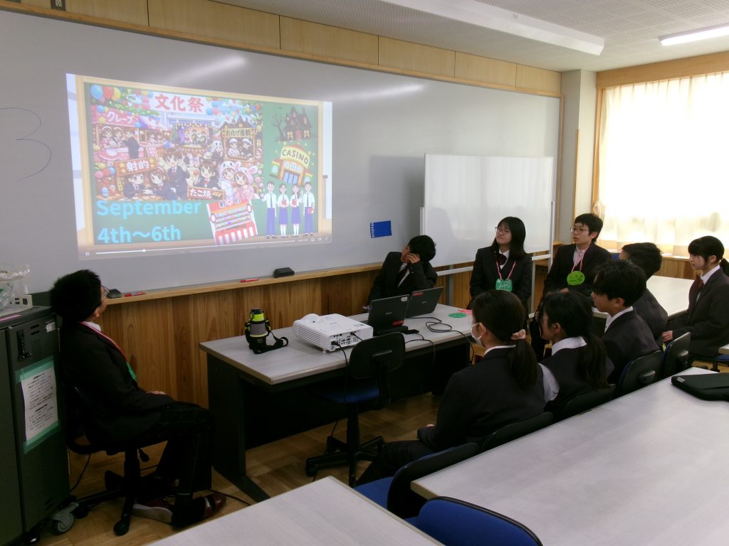 本日は、1年生と2年生の交流会を行いました。2年生は昨年度末に、外国語科の授業において、英語で本校の行事を紹介する動画を作成しました。本日は、まずはその動画を用いて1年生に対して本校の行事を紹介し、その後にフリートークとして1年生が知りたいことを2年生が回答する形で会が進みました。優しく丁寧に説明する2年生、積極的に質問する1年生、そして互いに礼儀(挨拶や御礼等)を大切にしながら交流する姿から、素敵な交流会になったと思います。1年生の中には、「この部分の英語が分からなかったので、日本語で翻訳してもらってもよいですか」と積極的に学びを深めようとする姿もありました。今後も学年を超えた交流会や、高校生との交流会を設けていきたいと思います。