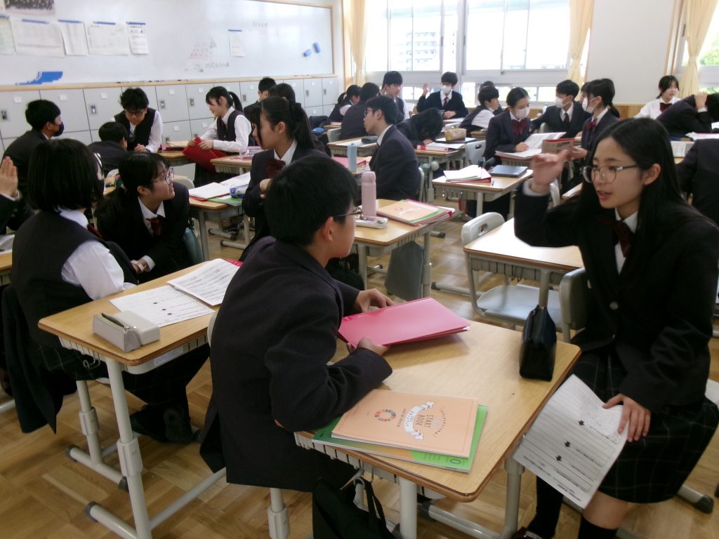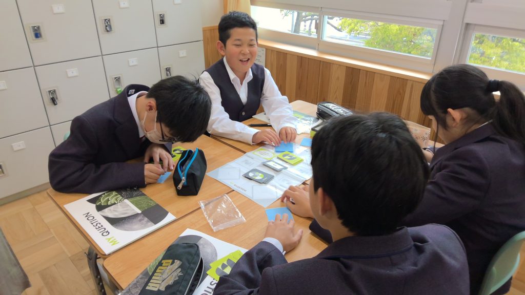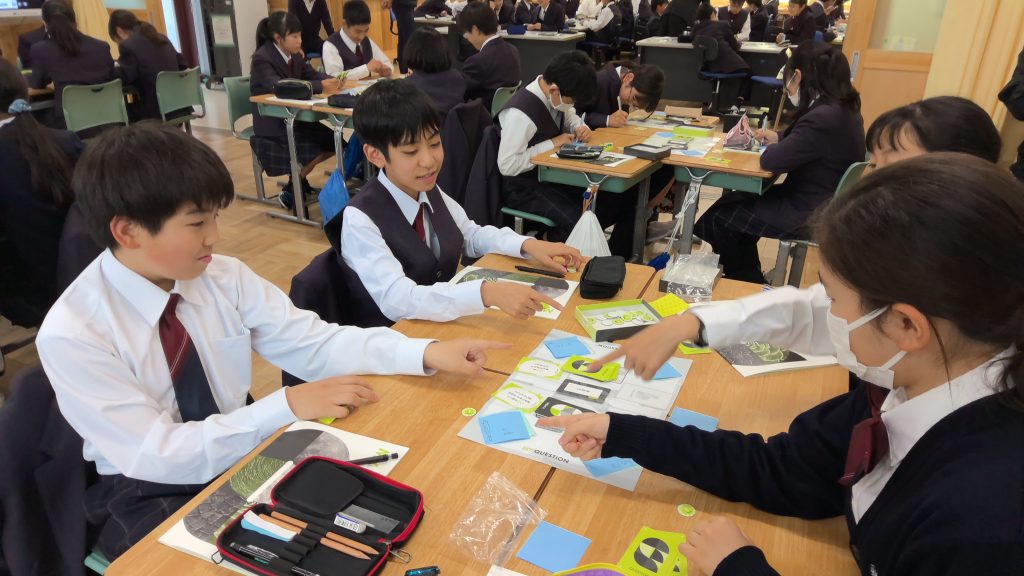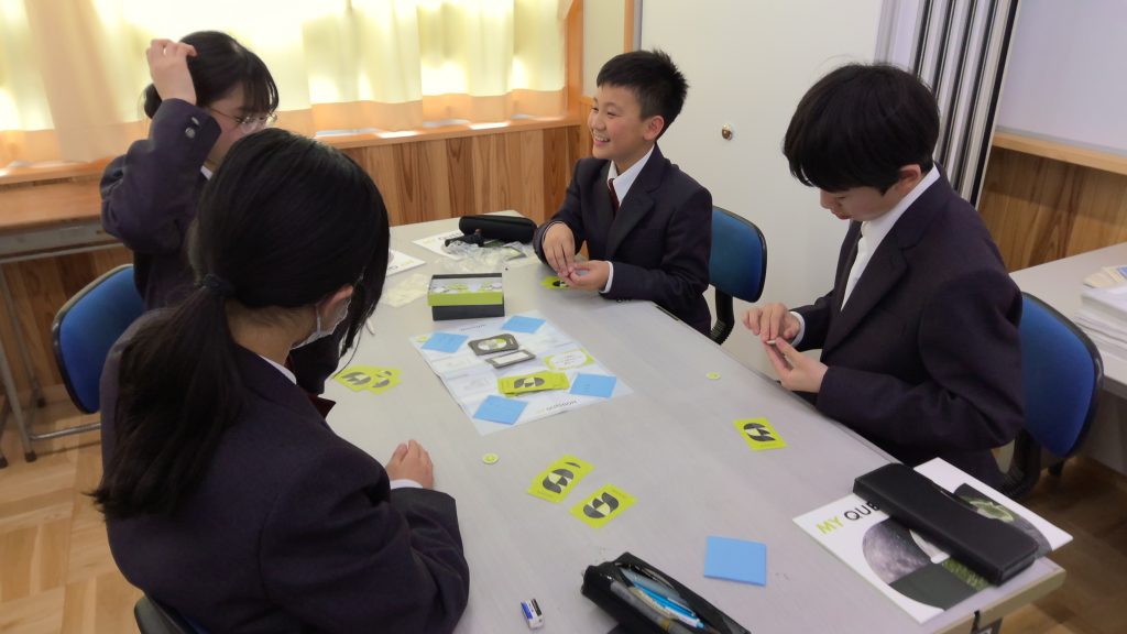 本日の午後は、1、2年生ともに、総合的な学習の時間がありました。1年生では、教材「マイクエスチョン」を活用し、カードゲームを通して、問いの立て方を学びました。みんながもっと考えてみたくなる問いについて、楽しみながら考察する機会になりました。2年生は、未来予想図Ⅲ「愛知県探究」や未来予想図Ⅳ「勤労探究」の今後の展望についての説明を受け、特に「愛知県探究」について、春休み中に各自が考えた問いについて交流する機会を設けました。これからは、各学年の計画にそって、本格的に始まっていきます。ご家庭でも、総合の授業の内容について、話題にしていただけますと幸いです。