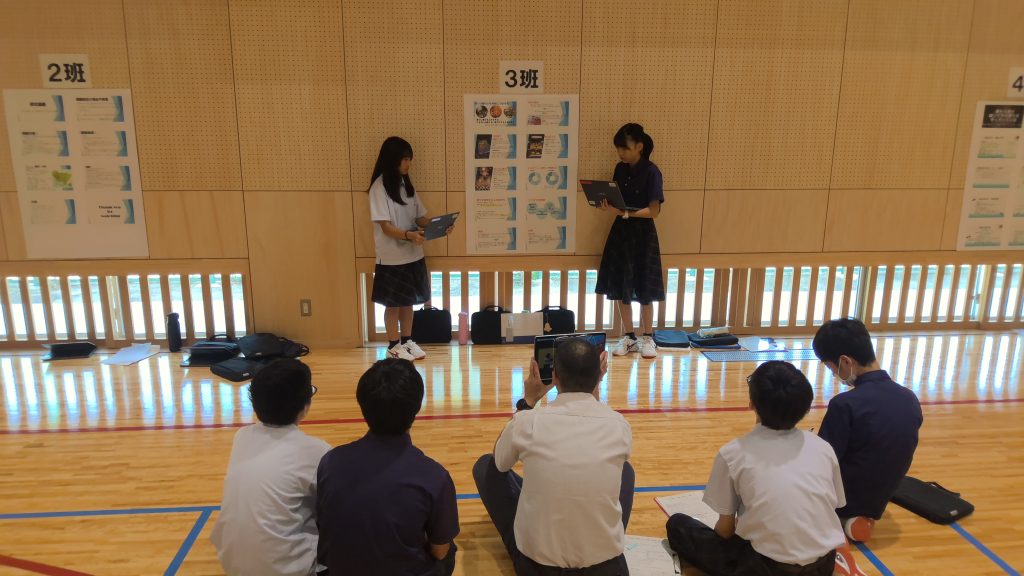 本日より、個別懇談会を実施しています。本校は3学期制ですが、通知表の配付等、生徒の学びの振り返りは、半年に一度実施していきます。個別懇談会では、総合的な学習の時間や各教科で行った探究的な学びを生徒自身が自己評価し、自己の成長を確かめ、今後の目標について話をする時間を大切にしています。こうした時間を通して、今後の探究学習の充実につなげてほしいと考えています。なお、技術室において、「地域探究成果発表会」のプレゼン資料を展示しておりますので、明日以降に懇談会にお越しの保護者の皆様は、技術室にお立ち寄りいただければ幸いです。