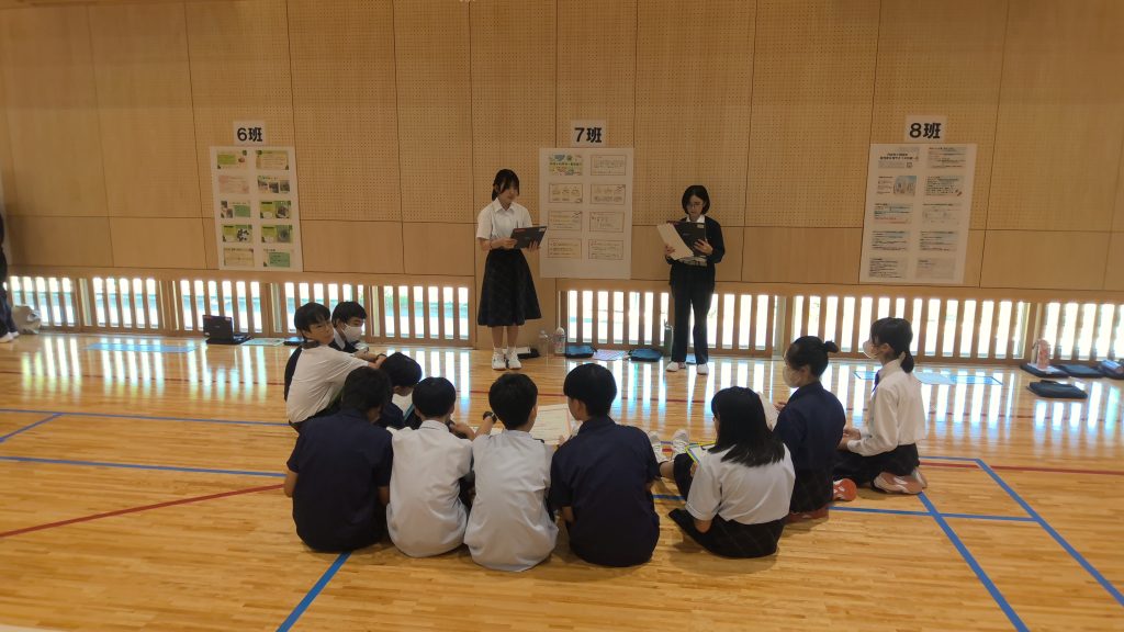 前期を振り返り、様々な委員会活動が行われました。環境委員は、エコキャップ回収を実施し、一回目は約4000個を回収し、来週二回目を実施します。給食委員は、給食の時間において、机拭き、当番の健康チェックや消毒、準備片付けの手伝い、献立一口メモを紹介しています。昨日は、放送委員が、昼の放送を始めました。校内に音楽が流れ、今後、さらに楽しい給食の時間になりそうですね。