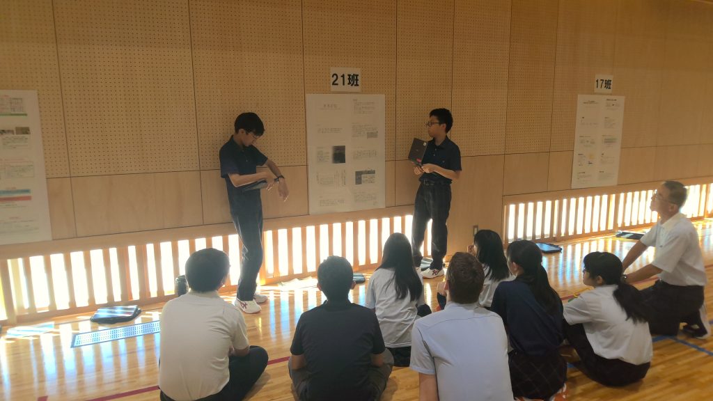 本日は、未来予想図Ⅰ「地域探究」の成果発表会が行われました。生徒たちは、成果発表会に向けて、約5か月かけて、探究を進めてきました。これまで、①調べても簡単に答えがでない問い、多様な情報収集を可能とする問いを立て、②フィールドワーク等を通して情報を収集し、②整理・分析を繰り返し、④最後に発表準備を行い、本日を迎えました。真剣かつ、こだわりをもって追究してきた成果発表会ということで、本日の会では、仲間に伝えたい、聞いてほしいと積極的に説明する姿がありました。また、仲間の発表に対し、鋭い質問をする生徒もたくさんいました。ともに支え合い高め合う姿が見られ、確かな成長を感じました。生徒たちの様子を、刈谷高校の先生、様々な報道関係者も参観され、多くの人に発信する機会となりました。今後に向けて大切なことは、個人、そしてグループでしっかり振り返ることです。