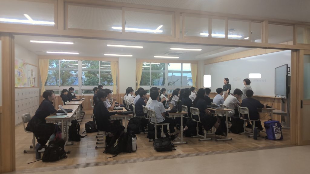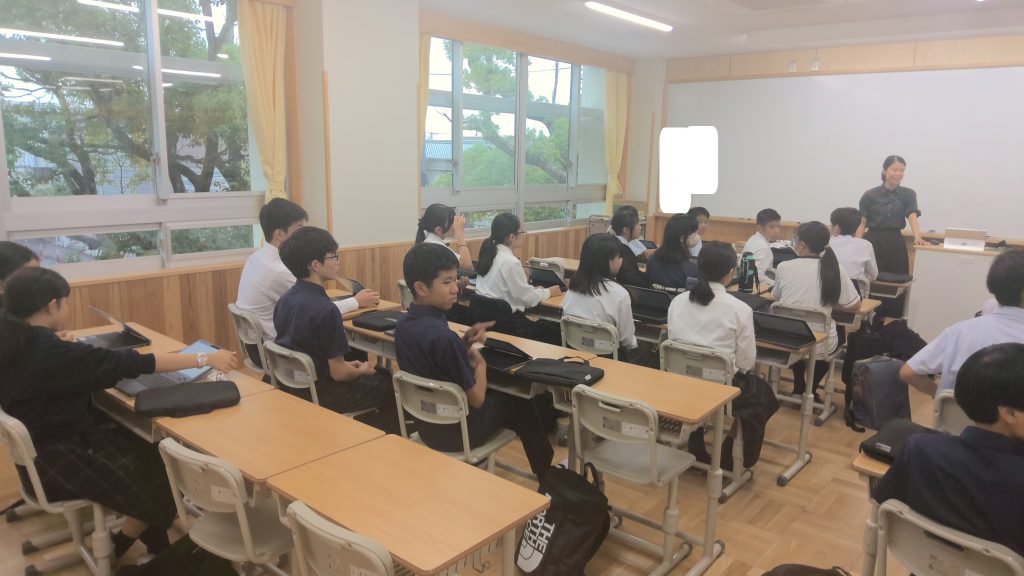 今週の外国語科と国語科の授業を紹介します。外国語科では、11月末に実施予定の第2回オンライン交流会に向けて、継続的に発表練習をしています。伝えたいことを英語で表現することは難しく、3つのステップをこなすことで、その困難さを乗り越えてほしいと思っています。本番では、自分の伝えたいことがオーストラリアの生徒にしっかりと伝わるように、準備を進めてほしいと思います。また、昨日の授業では、ALTがバンパイア衣装で授業を盛り上げ、グループで楽しく学ぶ姿がありました。また、国語科の授業では、授業の終盤に、百人一首に取り組んでいます。暗記している生徒が多く、上の句が読まれた瞬間に取り合う好勝負が展開され、とても白熱しています。