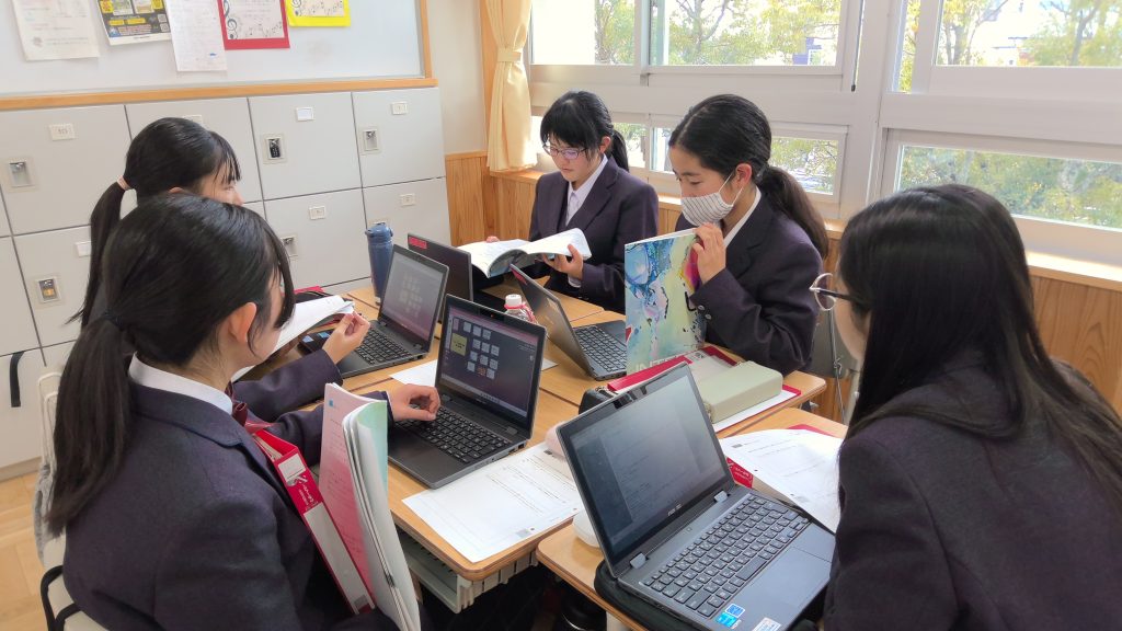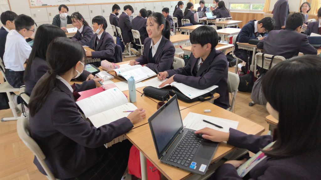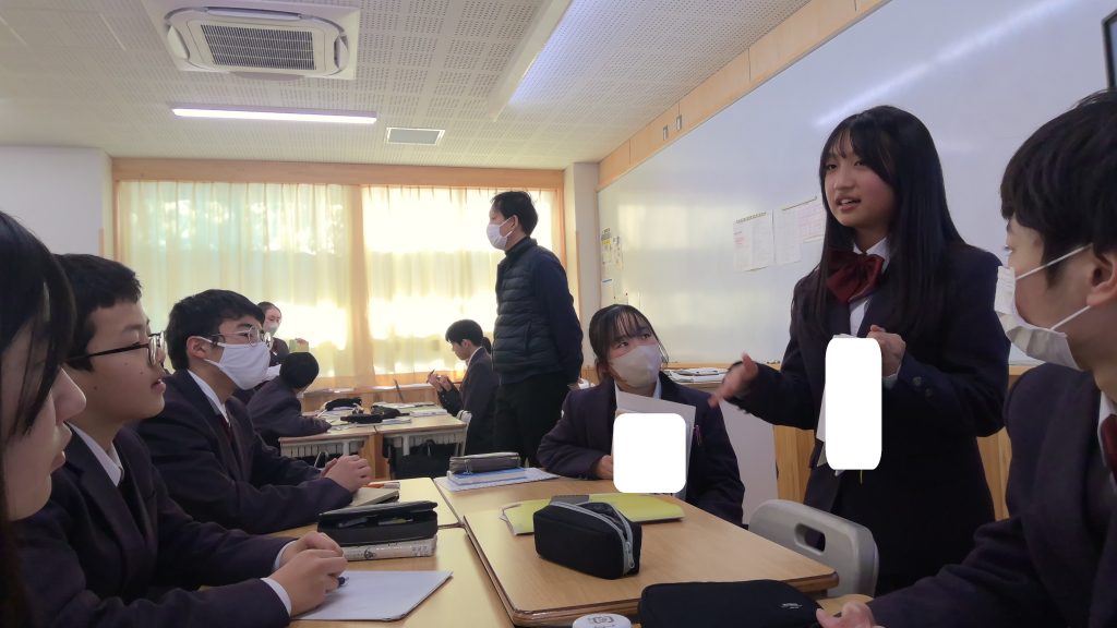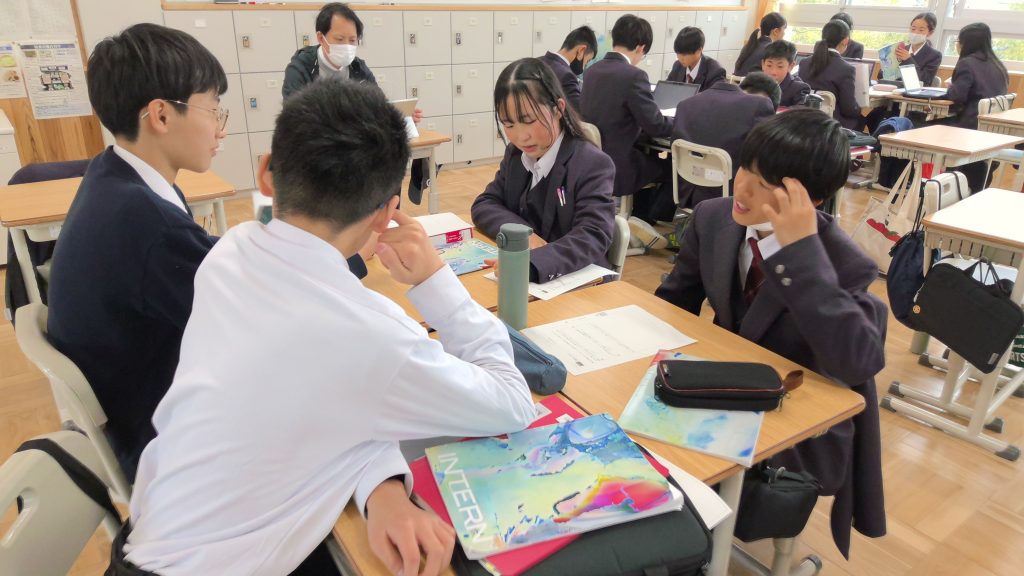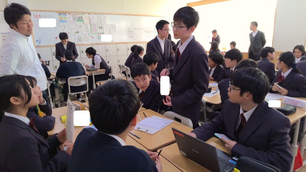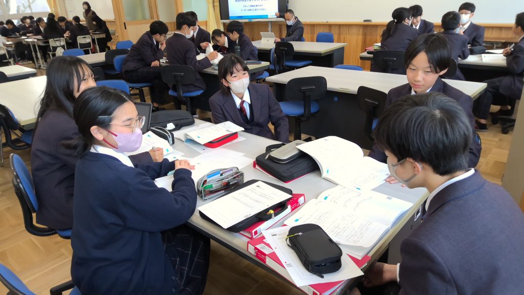 生徒たちは、冬休みの課題の一つとして、各インターン先の企業において、その企業が社会に生み出す価値について、情報収集を行いました。本日は、3学期初めての総合的な学習の時間ということで、まずは、それぞれが獲得してきた情報を伝え合いました。その後、話し合いを通して、それらを整理・分析し、まとめる作業を進めました。次回は、2週間後に授業において、プレゼンを行います。しっかり準備して、当日に臨みましょう。